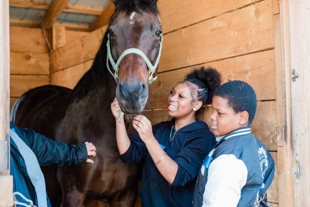 This Tier Two group, which includes 3rd through 8th graders this year, make monthly visits to the stables together. During these two-hour experiences, they build a relationship with a specific horse.